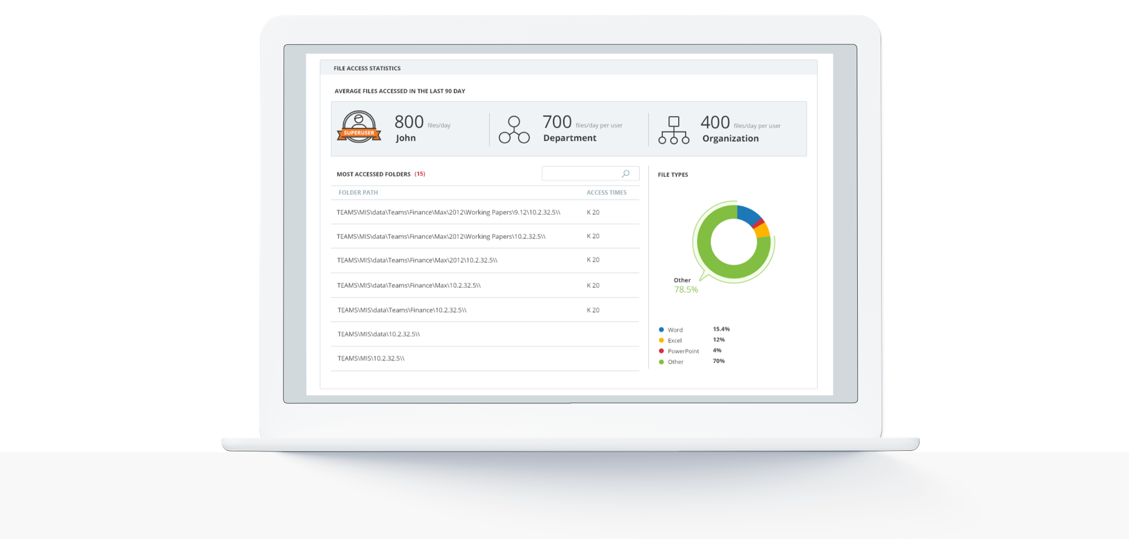 A dashboard view gives system administrators a high-level overview of the data risk status and the actions needed.