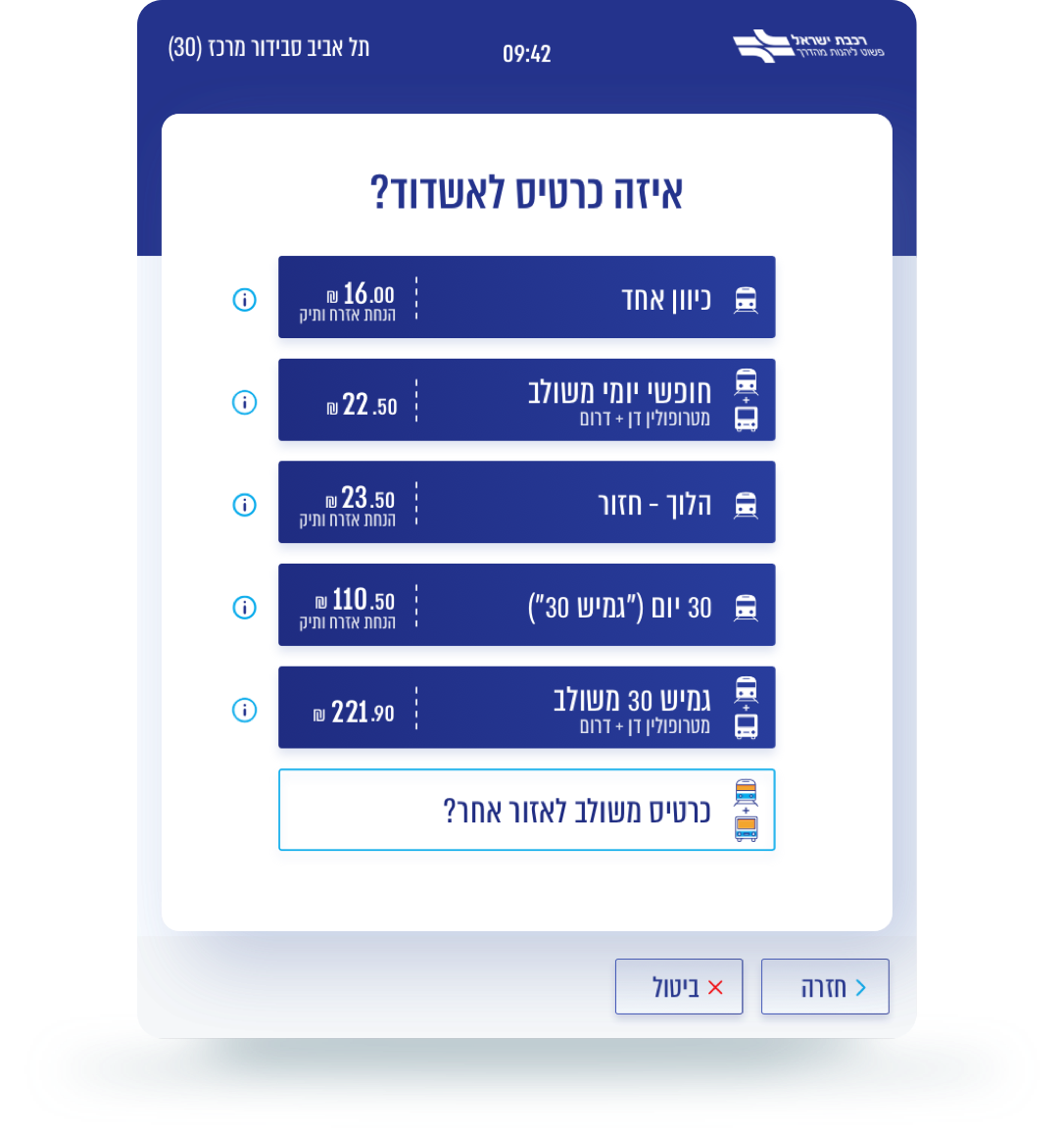 The available tickets for the route are displayed from the least to the most expensive, to speed up the decision-making process.