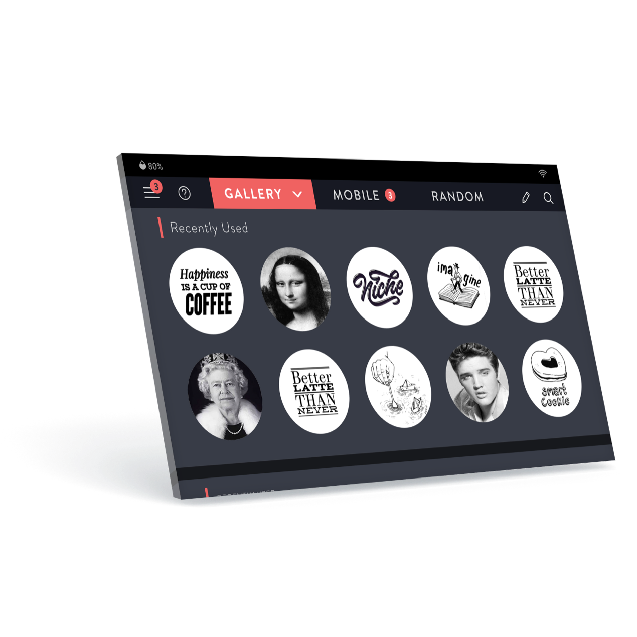 Machine users can select designs either from the ready-made gallery, from images sent by consumers via the mobile app, or create new surprising random designs.
