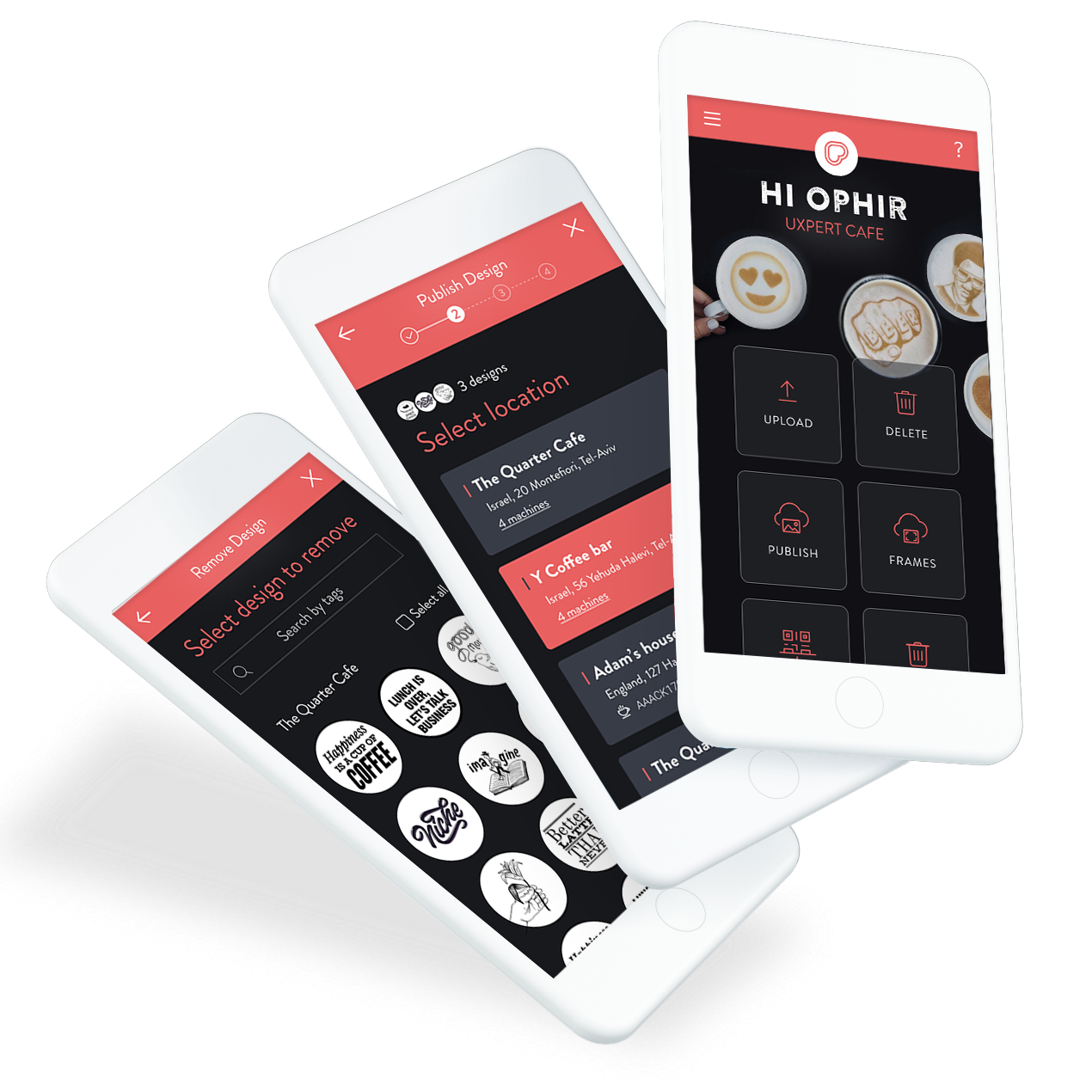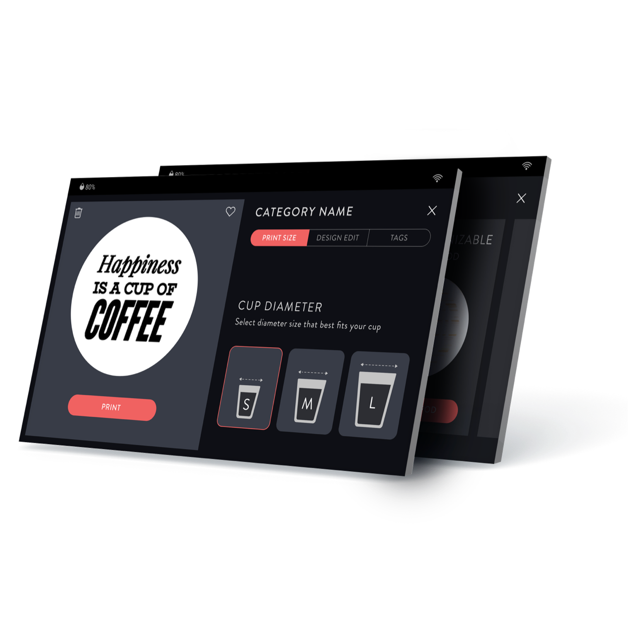 Coffee shops can manage their machines using an app, while their consumers can create their own unique designs and send those to the machine for printing!